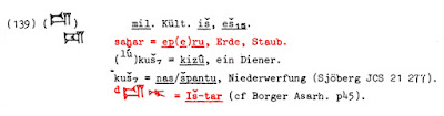 The most impressive aspect of this is that B & H looked up the sign IŠ in Borger and Labat then ignored that it is part of the name Ishtar when combined with the exact signs that are preceding (dingir -'god') and following (TAR), and instead they chose 'dust', 'sand' or 'dirt' (SAḪAR).