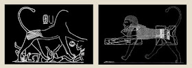 The earliest images of the warlike sphinx-griffin, reigns of Sahure (left), and Pepi II (right), 5th and 6th Dynasty.